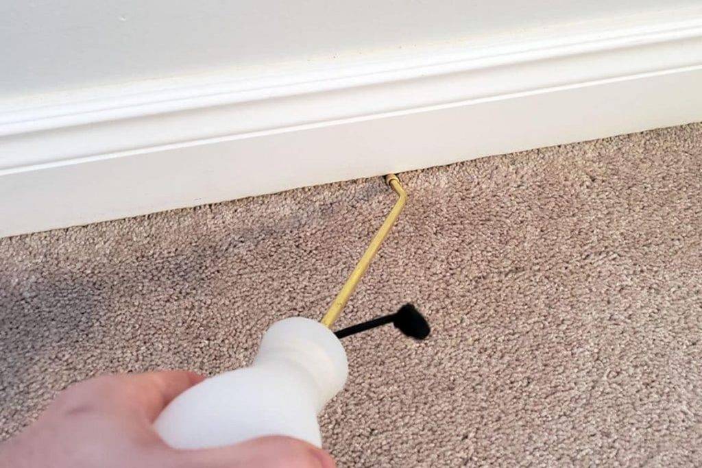 Разбрызгивают жидкость над плинтусами, полом, трубами