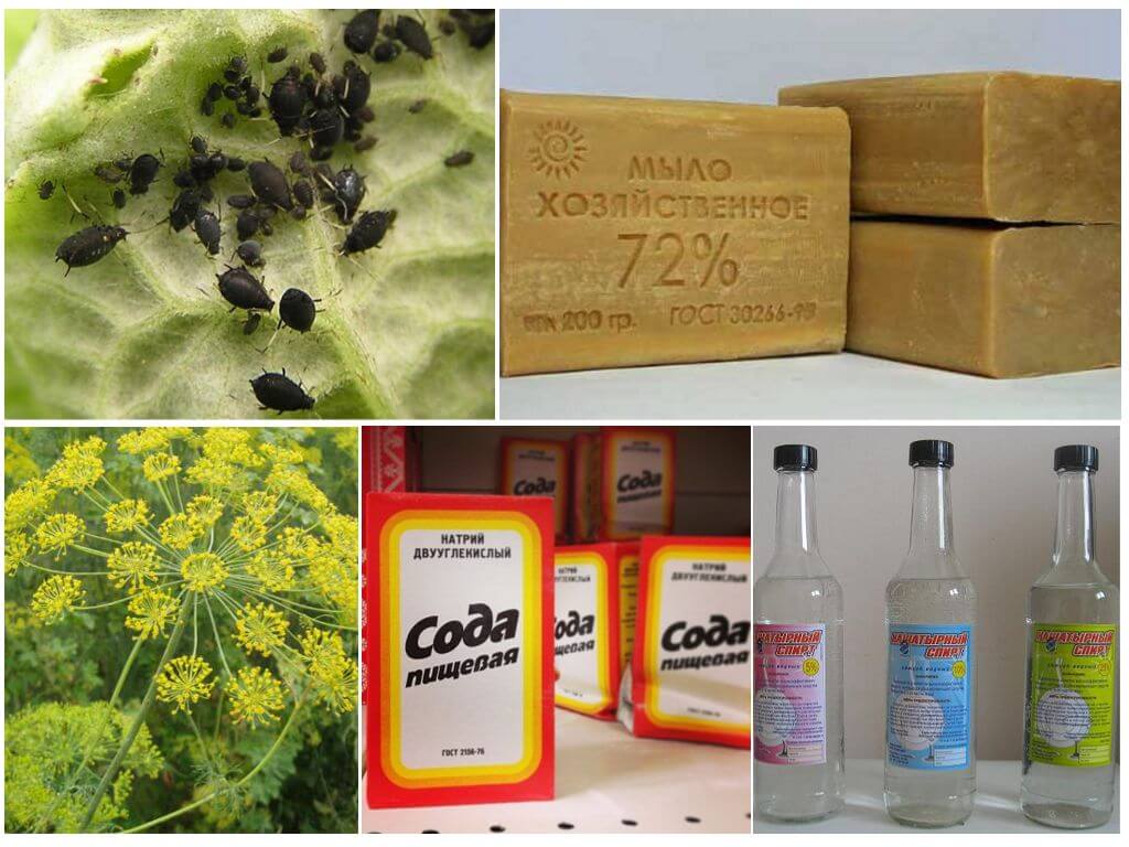 Подручными средствами:1. Водкой. Для обработки пойдет самая дешевая. Все, что нужно, так это налить ее в пульверизатор и опрыснуть растения.2. Кока-колой. Использовать так же, как и водку.3. Хозяйственным мылом: 200 г растворить в 10 л воды.4. Нашатырем: 1 ст. ложку развести в 10 л воды.5. Кальцинированной содой: 1 ст. ложку растворить в 1 л воды. Добавить 40 г хозяйственного мыла.6. Золой: 200–300 г залить 5 л крутого кипятка, остудить, процедить, добавить 20 г хозяйственного мыла.