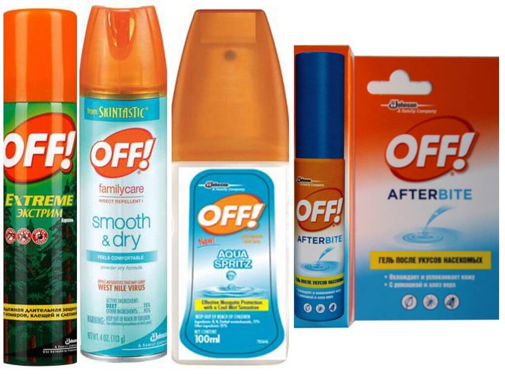 - Оff аква спрей от комаров. Содержит 15% активного компонента. Обладает охлаждающим эффектом. Успокаивает кожу после комариных укусов.