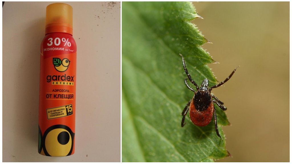 Специальный аэрозоль от таёжных и лесных клещей Гардекс Экстрим содержит два вещества, губительно воздействующих на нервную систему насекомого, причём в довольно высокой концентрации. Производитель препарата в аэрозольной форме гарантирует безопасность только в случае чёткого следования рекомендациям по использованию, которые исключают нанесение инсектицида на кожу. Применять это средство для детей и беременных женщин можно только в самом крайнем случае, и только для обработки предметов одежды, не контактирующих с лицом и руками (низ брюк, текстильная обувь).