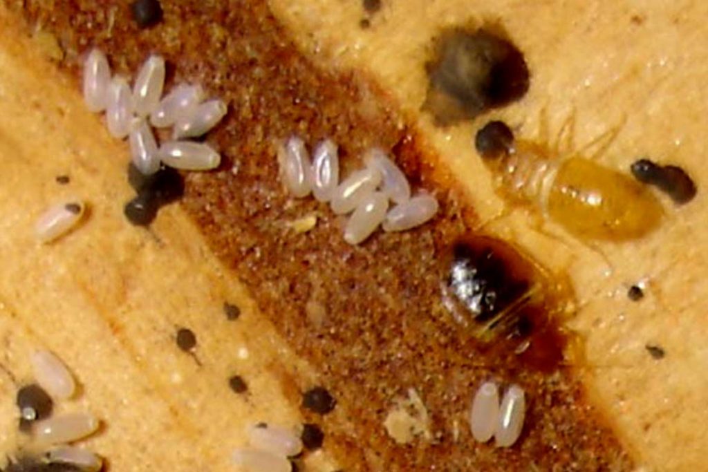 Из матки поступает специальное клейкое вещество, с помощью которого кладка крепится даже к вертикальным стенам. Выглядят яйца постельных клопов непримечательно и мало отличаются от кладок других домашних насекомых.