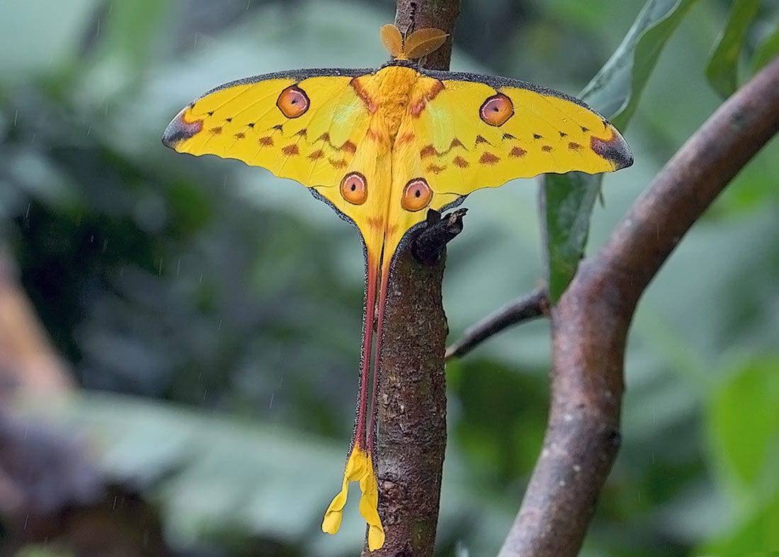 Красавица из Мадагаскара живет лишь 2-3 дня, а всё потому что, не имеет рта и органов ЖКТ. Поэтому она способна существовать ровно столько, насколько хватит питательных веществ, накопленных ею в период бытия гусеницей.