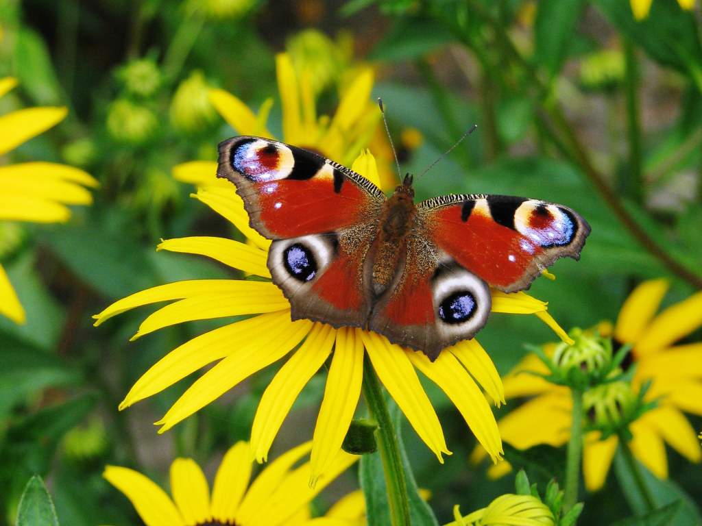 Павлиний глаз на соцветии очитка.