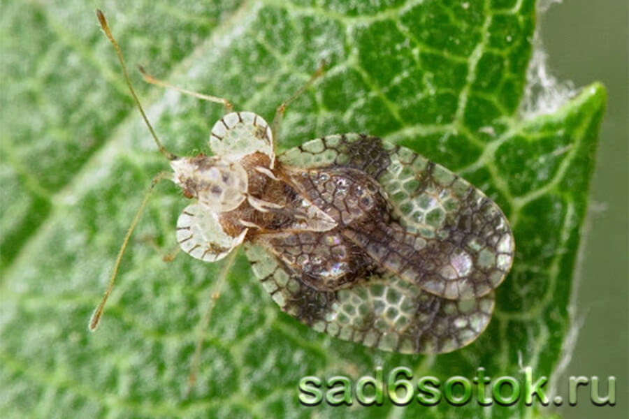 У рододендронового клопа (клещика) Stephanitis rhododendri глянцевитое черно-коричневое тело и кружевные крылья. Взрослые особи и неполовозрелые (нимфы) кормятся на нижней стороне листьев, которые делаются пятнистыми и закручиваются по краям. Низ листовой пластины бывает покрыт ржаво-коричневыми экскрементами вредителя. Он активно размножается на солнечных участках в сухую погоду.
