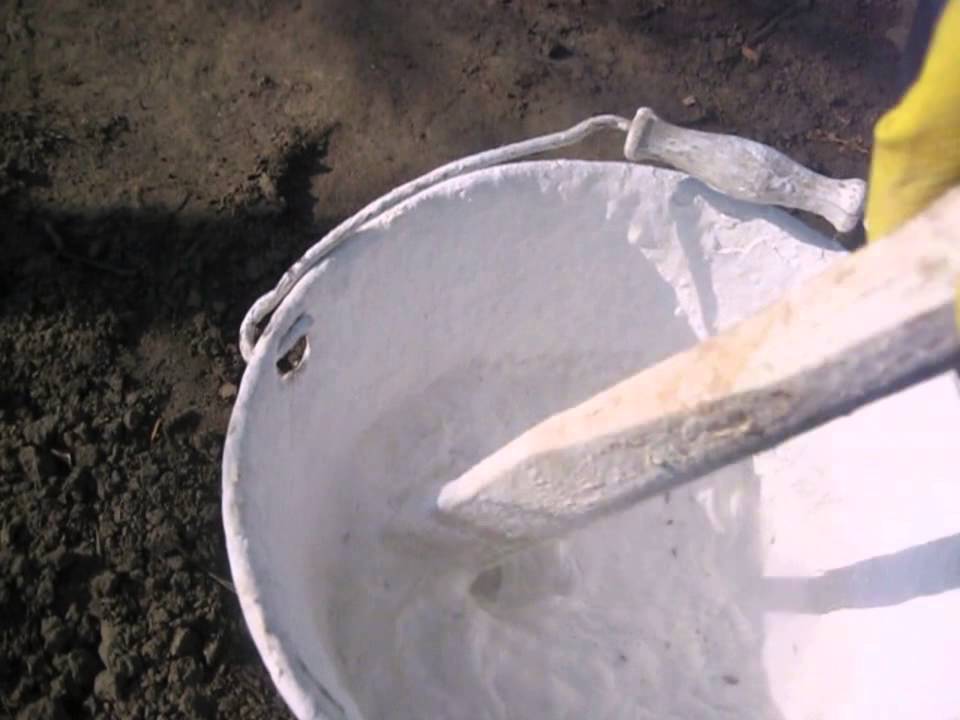 - Гашеная и хлорная известь в равных пропорциях разводится в небольшом количестве воды. Такой раствор можно наносить широкой кистью.