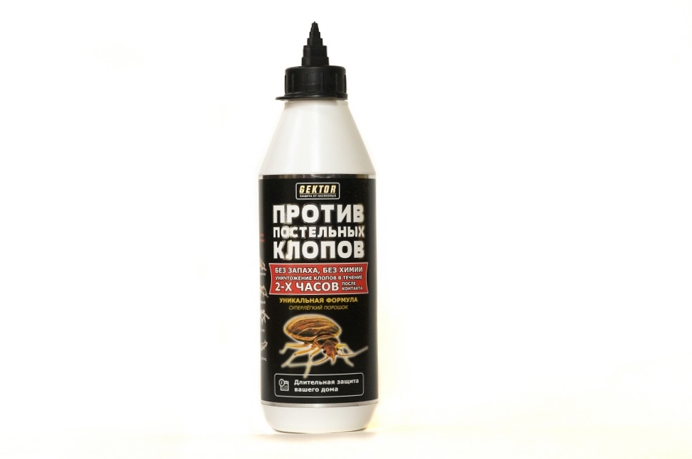 Диатомит (или кизельгур). Кизельгур является экологически чистым средством против клопов, которое может распространяться в виде порошка в возможных местах укрытия и типичных путях клопов. К ним относятся отверстия и трещины в стене, области за краем ковра, трещины по бокам розеток и другие области, которые обеспечивают доступ к полостям в стене. Мелкие и микроскопические частицы кизельгура повреждают хитиновую оболочку клопа и приводят к его высыханию. Диатомовая земля безвредна для людей и домашних животных, но ее не следует вдыхать (лучше всего использовать хирургическую маску).