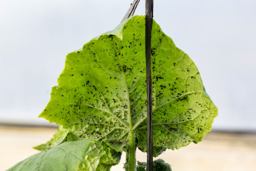 Вторая проблема, обусловленная активностью паразита, это выделяемый им секрет или роса. В ней размножается патогенный грибок. Спустя 24-30 часов огуречная рассада заболевает. Снижается урожайность. Третья проблема – листья необходимы мошкам для откладывания яиц. Расположены они вдоль внутренней стороны. Реже кладка заметна на стебле или у основания.