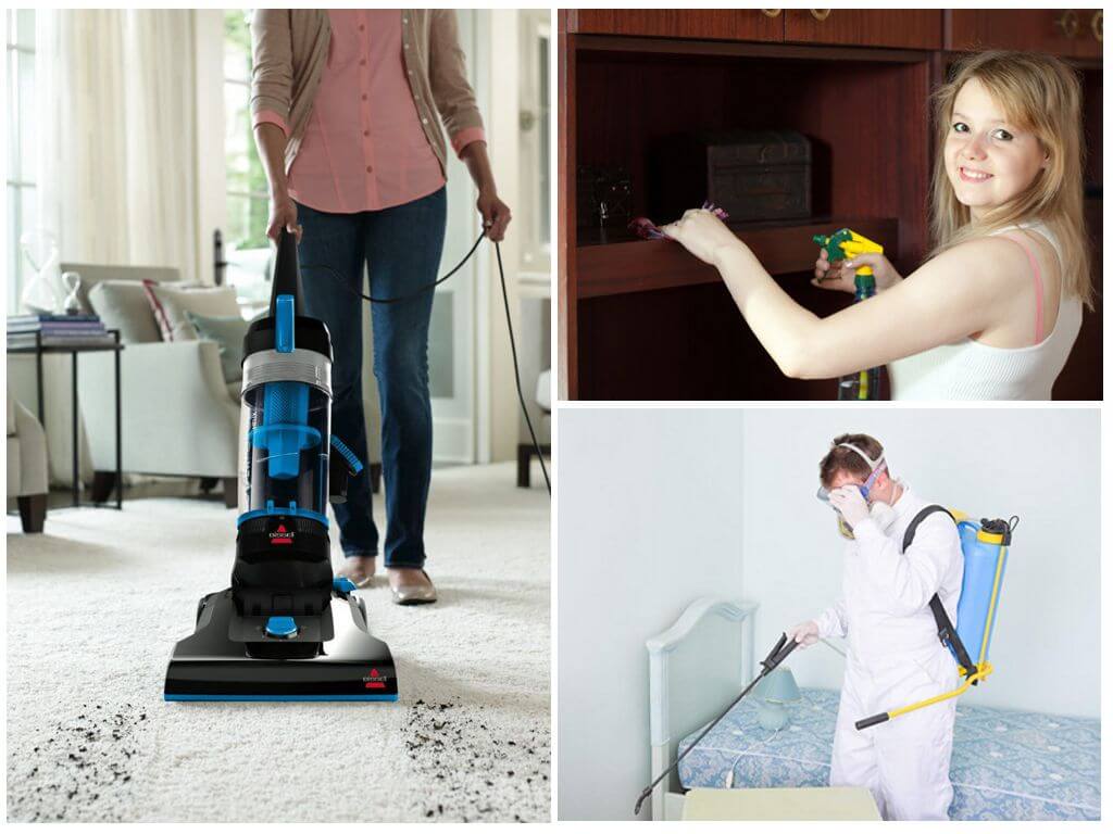 - Промойте и обработайте по максимуму все поверхности. Если в вашем доме есть ворсистые поверхности, обработайте их с особым тщанием – именно такие места идеальны для вредителей.