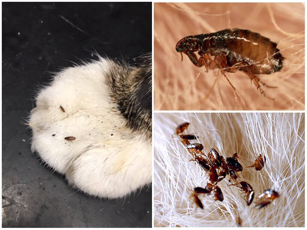 Пропустить момент заражения блохами довольно сложно: животное сразу начинает проявлять беспокойство, чесаться. На местах укусов появляются припухлости, красные волдыри. Выявить заражение просто — достаточно раздвинуть шерсть животного и внимательно рассмотреть кожу. Также можно обнаружить личинки при расчесывании питомца.