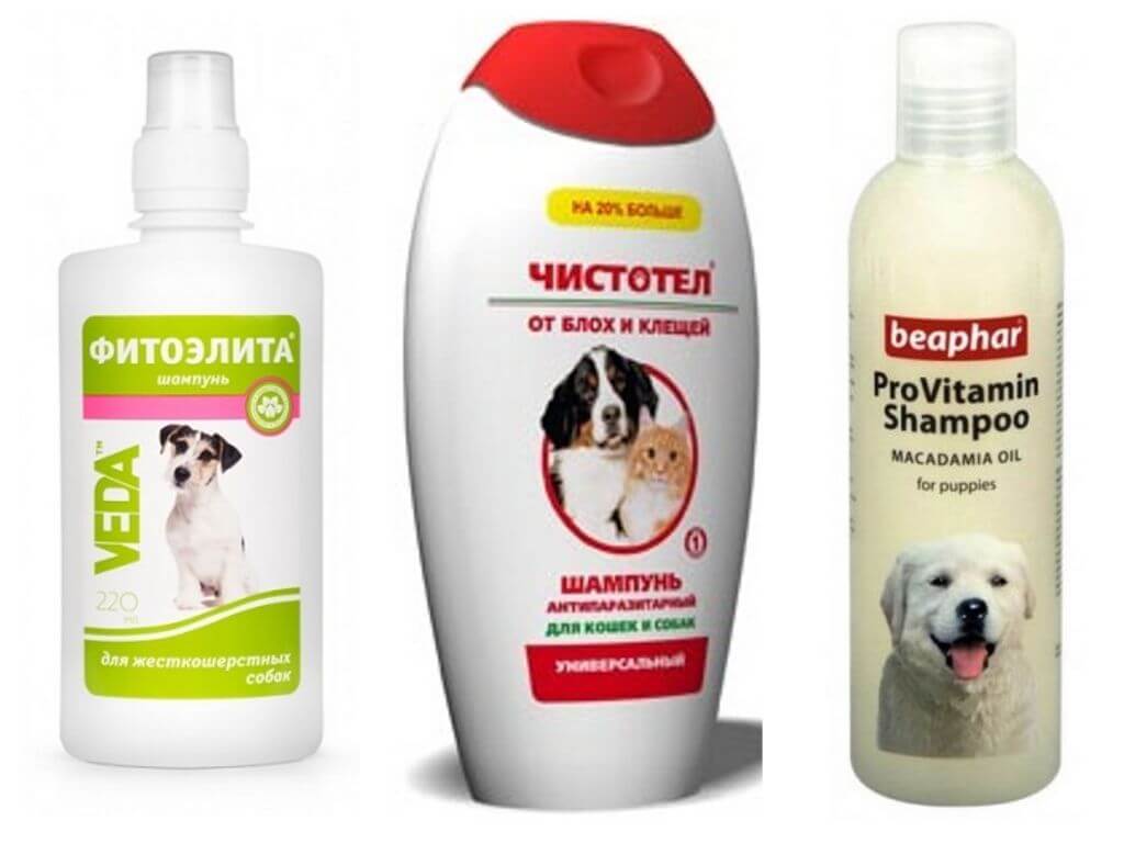 Следует наносить шампунь равномерно на влажную шерсть пса, оставить на несколько минут, смыть. Применять такие средства рекомендуется комплексно, сочетая их с более действенными препаратами против блох. Особенной популярностью пользуются следующие виды шампуней: Чистотел, Доктор Зоо.