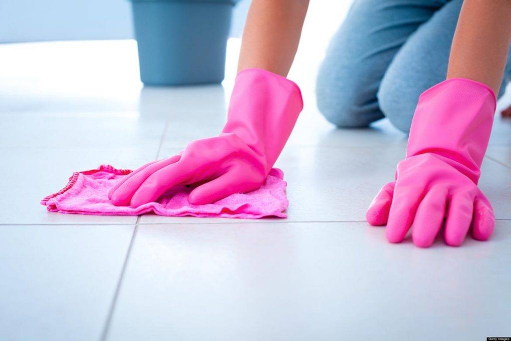 Если протирать поверхность большой площади неразбавленным средством, запах будет настолько сильным, что человек не сможет находиться в помещении. Применяют водный раствор уксуса: 1 ст. л. на 1 л жидкости. Средством моют полы, плинтуса на кухне и в санузле.