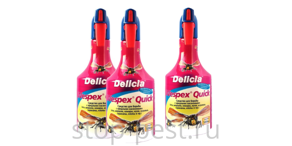 - Delicia Wespex Quick – в белом флаконе с красной наклейкой от летающих и ползающих насекомых.