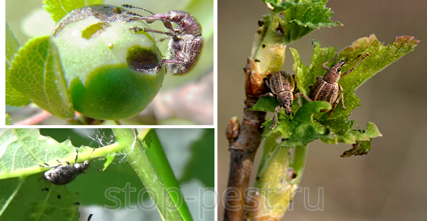 Повреждения, наносимые долгоносиком плодово-ягодным растениям