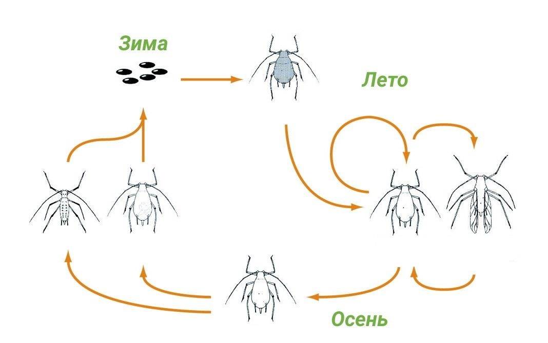 Тля появляется весной из отложенных осенью и перезимовавших яиц на молодых ростках. Подрастая насекомые, начинают активно высасывать клеточные соки растений.