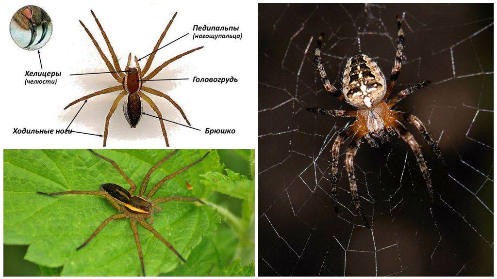 Внутреннее строение тела паука: схема паука крестовика с надписями и описанием