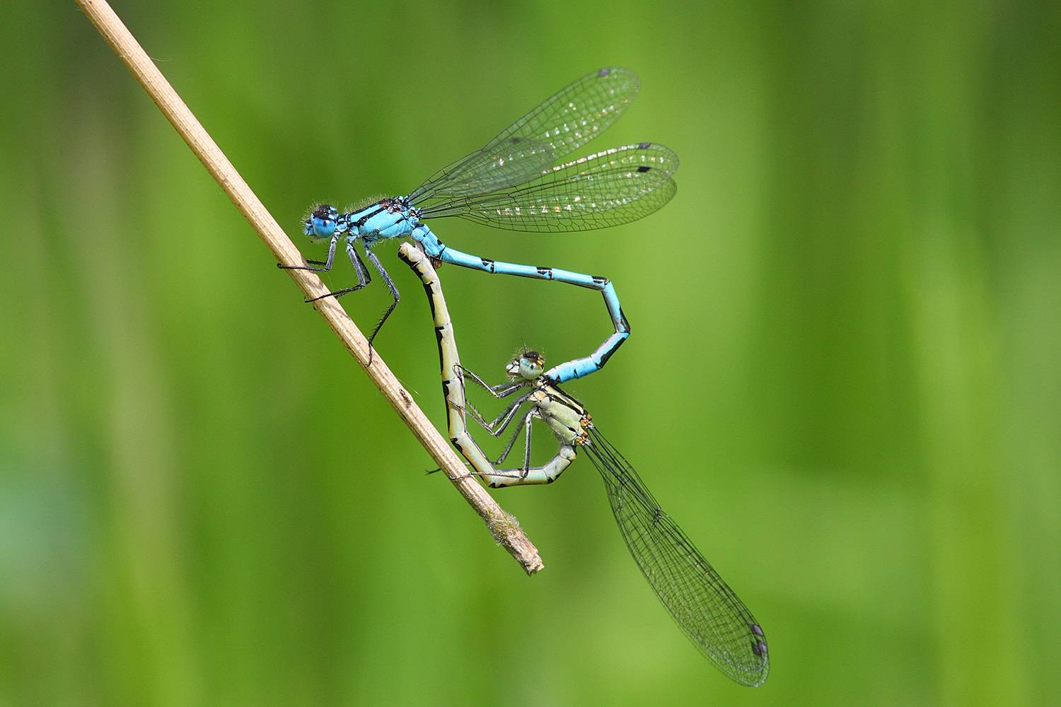 Спаривание насекомых отряда стрекоз происходит на лету. Ему непременно предшествует брачный танец, исполняемый самцом для привлечения самки к собственной персоне.
