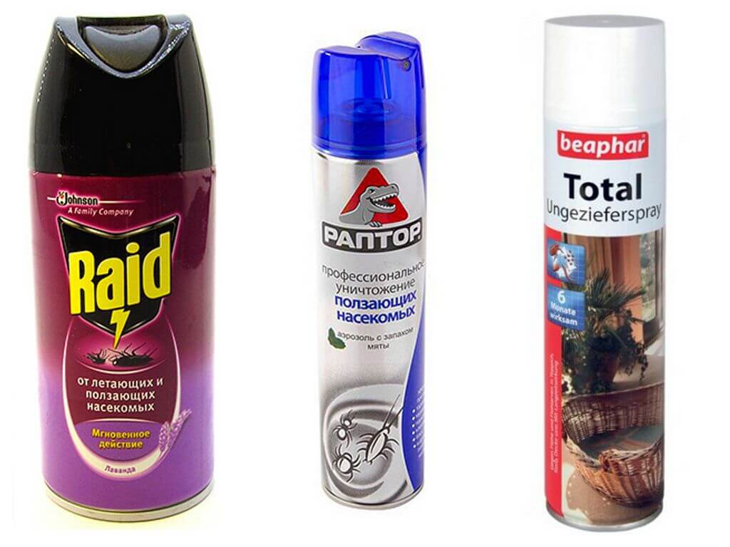 - спрей Раптор “Против ползающих насекомых”: безопасный и эффективный препарат с приятным запахом мяты. Двух баллонов хватает для обработки 1-комнатной квартиры;