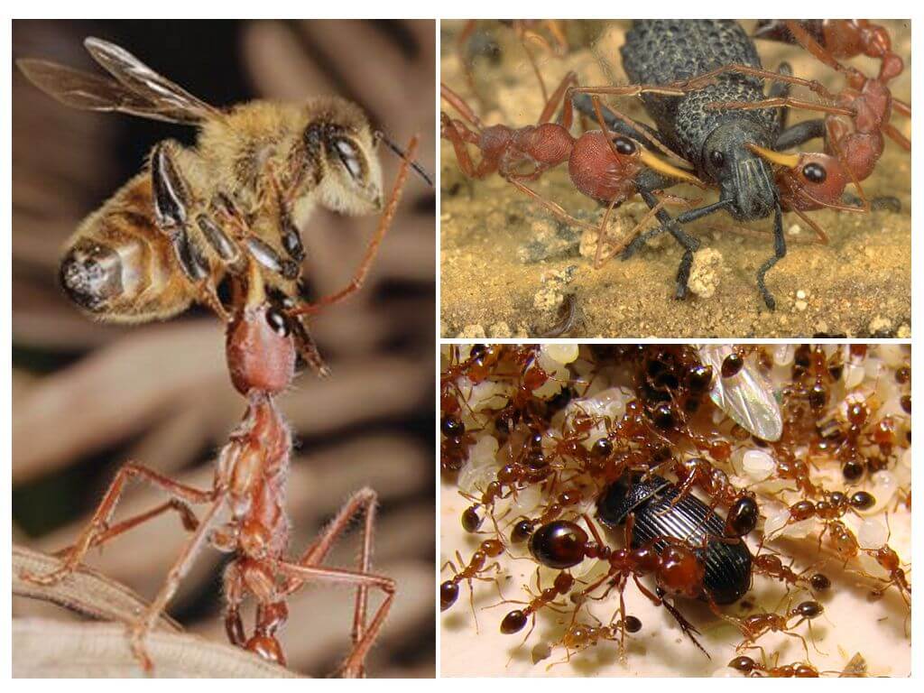 - Красные огненные муравьи употребляют в пищу различных насекомых, в своей среде обитания они сокращают численность вредителей сельского хозяйства, уничтожая хлопковых долгоносиков, огневок на сахарном тростнике. Нападают и прогоняют своих же собратьев.