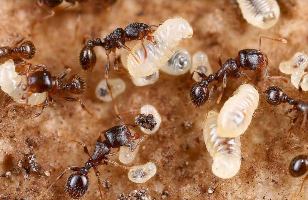 Личинки раннего возраста не могут употреблять пищу самостоятельно. По этой причине взрослые особи выращивают потомство самостоятельно – они кормят молодых особей, используя метод трофоллаксиса. При этом в организм личинок попадает пища, которую частично переварили муравьи. Когда потомство становится старше, членистоногие приносят насекомых в качестве еды. Однако молодые особи пока не могут употреблять живых вредителей, а потому они должны съедать падать. Как только муравьи подрастут, смогут самостоятельно добывать еду, приносить в муравейник, распределять между всеми.