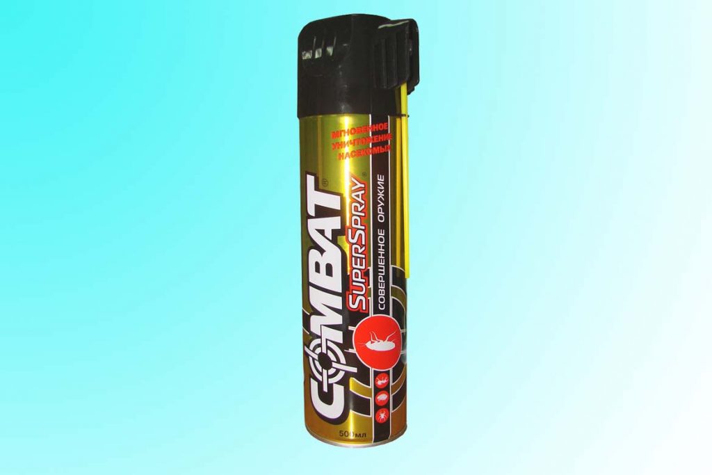 - Комбат – аэрозоль, содержит пиретроиды, работает эффективно при условии, что средство не используется часто, его можно комбинировать с другими препаратами, для удобства обработки на баллоне предусмотрена тонкая насадка;