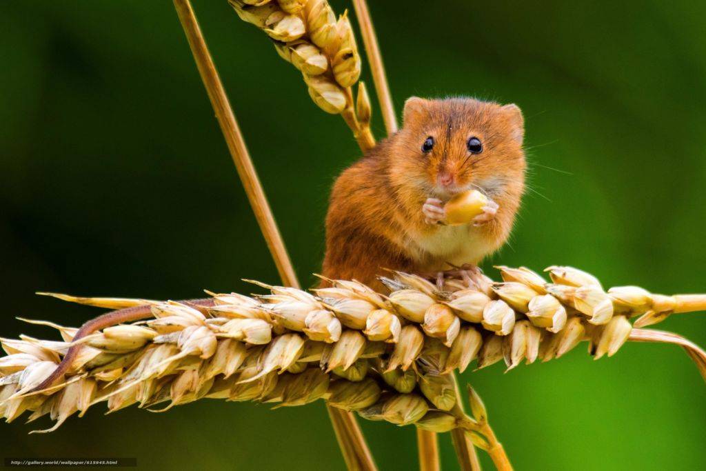 Мышь-малютка – самая маленькая. Окрас чаще рыжий. Хорошо противостоит холоду. Питается травой, иногда жучками. В отличие от остальных, не зимует.