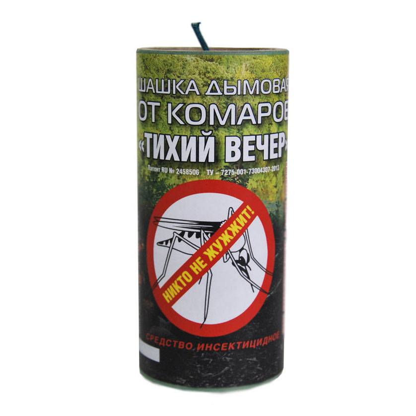 Это один из наиболее распространенных препаратов. Продолжительность высвобождения дыма – 5 минут. Однако этого достаточно, чтобы качественно обработать все поверхности, предметы, вещи. Продолжительность воздействия на вредителей – 3 дня. Обрабатываемая площадь составляет 250 м2. Дымовую шашку Тихий вечер можно использовать и для очистки объектов меньших размеров. При этом концентрация отравляющего вещества возрастет.