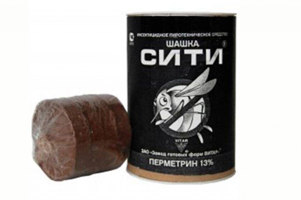 Форма выпуска – блоки по 50 г. Действующее вещество – перметрин, относится к классу пиретроидов. Средство может уничтожать разных насекомых, применяется на территории жилых объектов, но не в многоквартирных домах (из-за сильного задымления). Длительность остаточного действия – до 14 дней. Недостатком такого препарата является риск возгорания, т. к. дымовая шашка раскаляется.