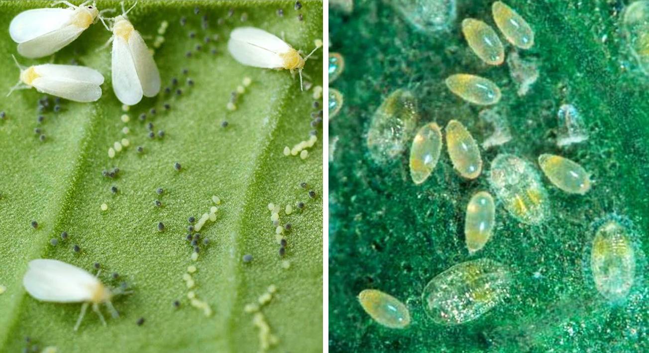 Главный вредитель — это личинка белокрылки, которая сразу после выхода из яйца прикрепляется к нижней (внутренней) стороне листа и начинает питаться (высасывать из него соки — все питательные вещества).