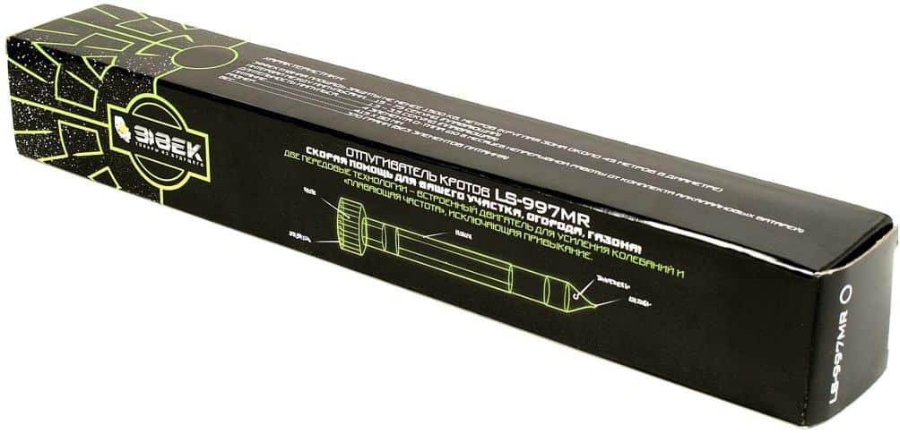 Стоит отметить удобство в эксплуатации данного аппарата – его не придется выкапывать для того, чтобы сменить комплект батарее, достаточно вынуть батарейный отсек. Прибор не боится дождя и снега, не подвержен коррозийному эффекту, да и механическое повреждение можно нанести только специально стуча по нему лопатой. Очень мощный и эффективный девайс, способный устранить проблему кротов и прочих вредителей за считанные дни.