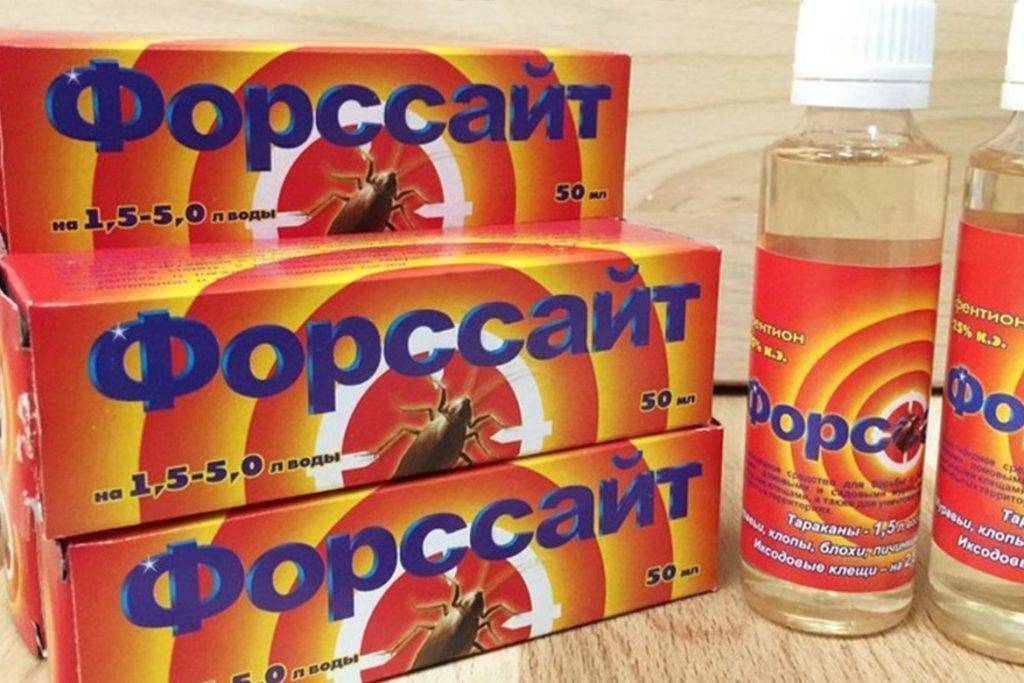 - При большом наличии вредителей это средство можно использовать в сочетании с «Хлорофосом» или «Микроцином», что ускорит действие «Форсайта». Это связано с тем, что эти вещества более токсичные.