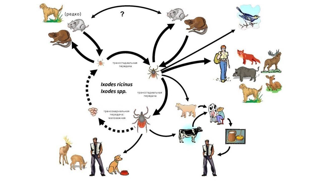 Вирус клещевого энцефалита относится к группе арбовирусов, которые передаются с участием насекомых – комаров и клещей. Его переносчиками являются несколько видов иксодовых клещей (рис. 3), которые, в свою очередь, заражаются вирусом от его носителей – теплокровных животных. Клещи обитают в основном в лесах и лугах, но встретить их можно не только в дикой местности — они частые гости и в городских парках.