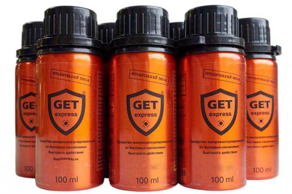 GET Express – суспензия с мгновенным эффектом, состоящая из микрокапсул, предназначенная для полного избавления от домашних вредителей – тараканов, ос, блох, мух.
