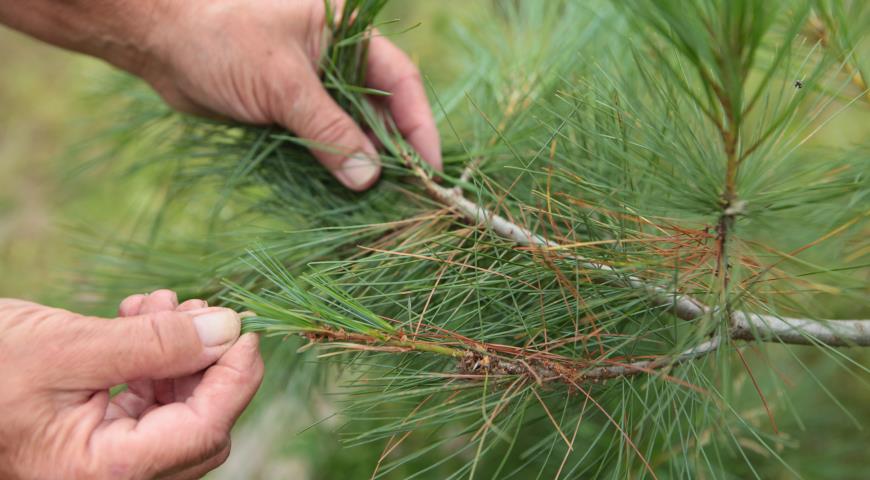 - Немедленно удалите с сосен повреждённые почки и ветки.