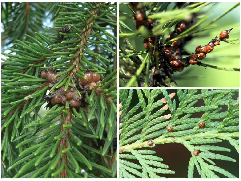 Хвойные растения могут подвергаться нападению насекомых-вредителей.