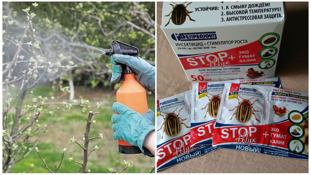 Самое эффективное и относительно безопасное средство, которое эффективно в отношении всех огородных и садовых вредителей. Жидкое средство разводят в воде, после чего переливают в специальный опрыскиватель и обрабатывают наземную часть растения. Как показывает практика, двух обработок за сезон вполне достаточно, чтобы сократить популяцию жука на участке.