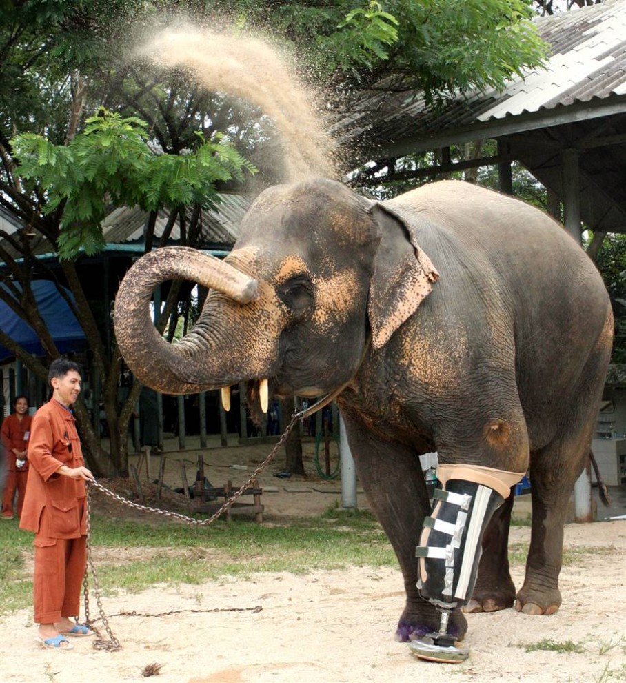 На фотографии ниже слон по кличке Мотала. Ему поставили протез передней левой конечности в специализированной ветеренарной клинике для слонов в таиландской провинции Лампанг.
