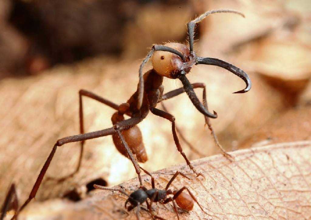 В Австралии живут самые примитивные и самые крупные муравьи, имеющие большое сходство с осами. Их называют муравьями-бульдогами. Название станет понятным, если посмотреть, как выглядит муравей: у них просто огромные челюсти, которые помогают им добывать пищу и, как ни странно, прыгать. Челюстями они отталкиваются от земли и прыгают на 30-и сантиметровое расстояние. Уникальны муравьи-бульдоги еще тем, что умеют плавать и опасны для людей. У них есть жало, при укусе яд попадает в кровь и вызывает анафилактический шок.
