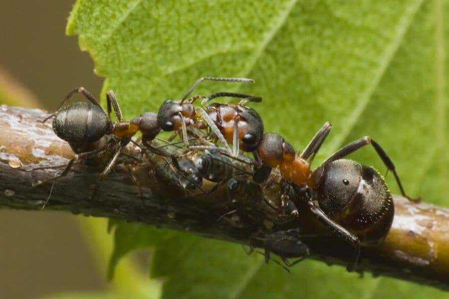Но однажды естественный отбор подсказал вредителям, что муравьев можно не отпугивать, а приманивать и заставлять охранять себя. Так возник уникальный в своем роде пример симбиоза двух совершенно разных групп насекомых: тли делятся с муравьями сладкими, полезными и сытными выделениями, а муравьи их охраняют.