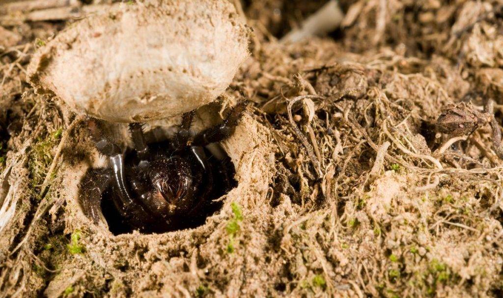 Некоторые виды мигаломорфных пауков закрывают свои норы специальными заслонками, сделанными из почвы, растительности и шелка.
