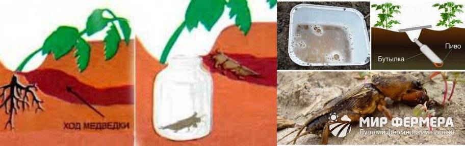 - пиво или квас. Купите самый дешевый сорт пива или кваса. Разлейте напиток в бутылки или банки. Закопайте тару под углом 45 градусов в землю. Медведка попадет в смертельную ловушку и умрет в ней. Прокисшее пиво выливайте, а мертвых насекомых уничтожайте. Используйте этот метод на протяжении всего огородного сезона;