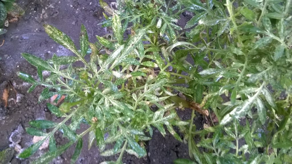 Если лето выдаётся сухим, то колонии паутинных клещей могут легко атаковать бархатцы. Сначала вредители поселяются на молодых побегах и выпивают соки из них. Потом перемещаются к тем стебелькам, что уже отросли раньше.