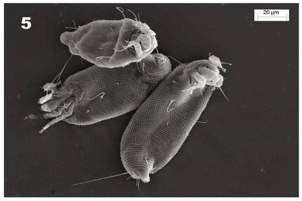 Это четырехногие особи. Они существенно отличаются от представителей других видов: напоминают червей, так как тело конусообразное, состоит из большого количества колец. Клещ этого вида уничтожает не только яблоню, но и другие плодовые деревья, а также ягодные, овощные культуры, декоративные растения, вредит лесу. Длина тела галловых клещей не более 0,2 мм.