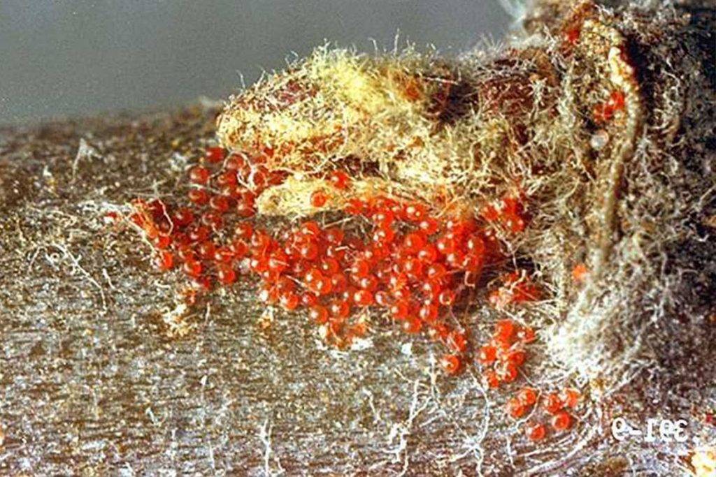 Специфические признаки появления яблоневых клещей этого вида: