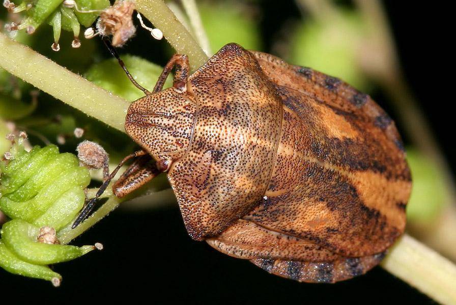 Относится к щитникам. Его отличает от собратьев возможность впадать в диапаузу на стадии яйца перед наступлением зимы. Такой хищник нападает на колорадского жука, причем люди научились контролировать процесс уничтожения растительноядных насекомых.