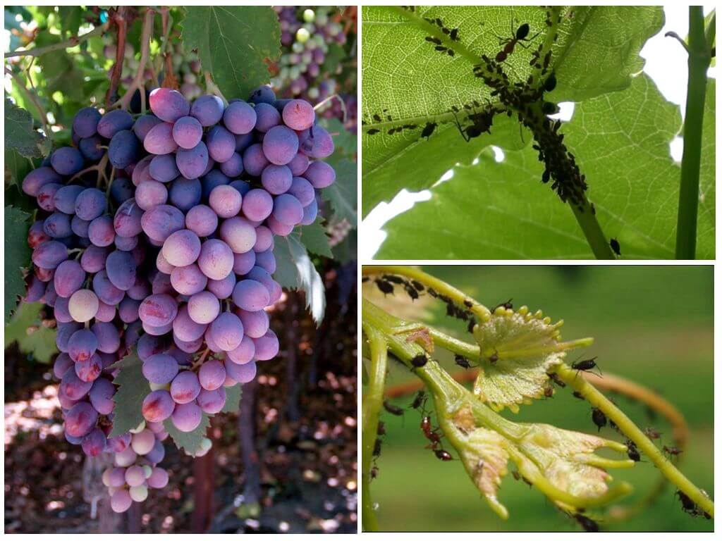 Вероятных причин того, что на виноградном кусте поселились насекомые-вредители, несколько. Иногда виной этому бывают обычные муравьи, которые используют тлю, как коров, специально разводя ее для получения сладкого молочка.