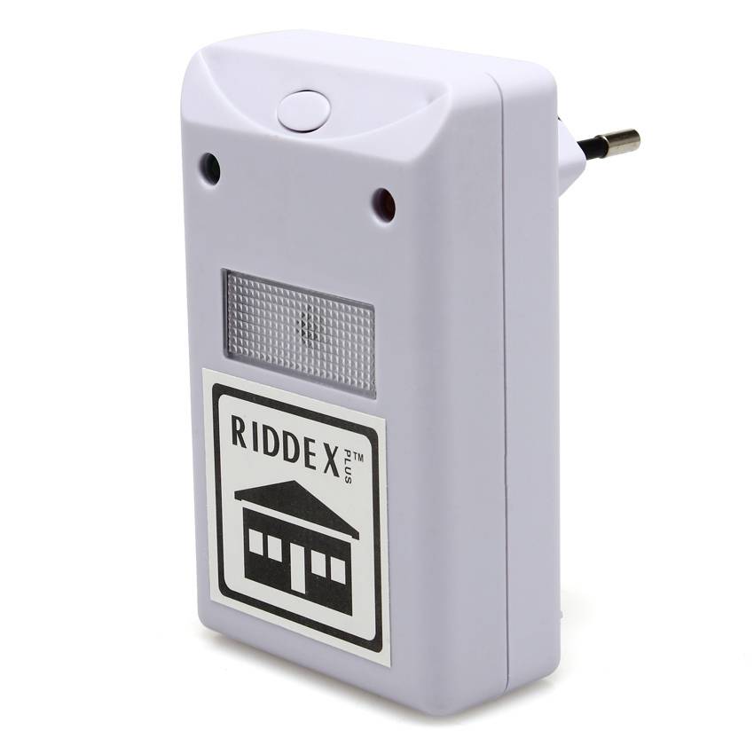 - «Riddex Plus» — прибор имеет пластиковый ударопрочный корпус, устойчив к влажности – до 90% и температурным перепадам – от -35 до +45°С, зона действия отпугивателя – 80-200 кв. м.