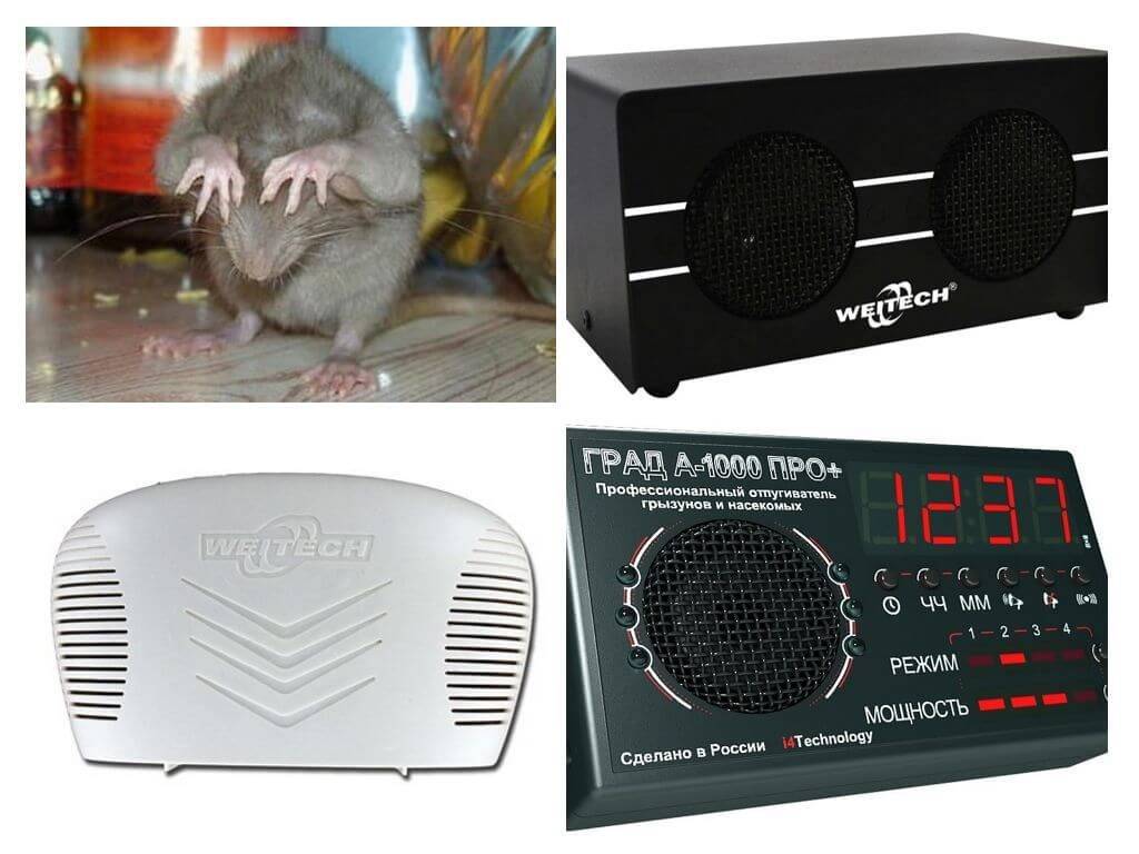 Мелкие грызуну поддаются их влиянию, и благодаря этому воздействию мыши уходят с занятой территории. Универсальными устройствами, излучающими ультразвук и проверенными на практике, считаются «Град», «Антикрот», «Торнадо», «Чистон». Перед из применением рекомендуют ознакомиться с инструкцией по применению: некоторые излучатели заглубляют в землю перед использованием, другие монтируют под навесами.