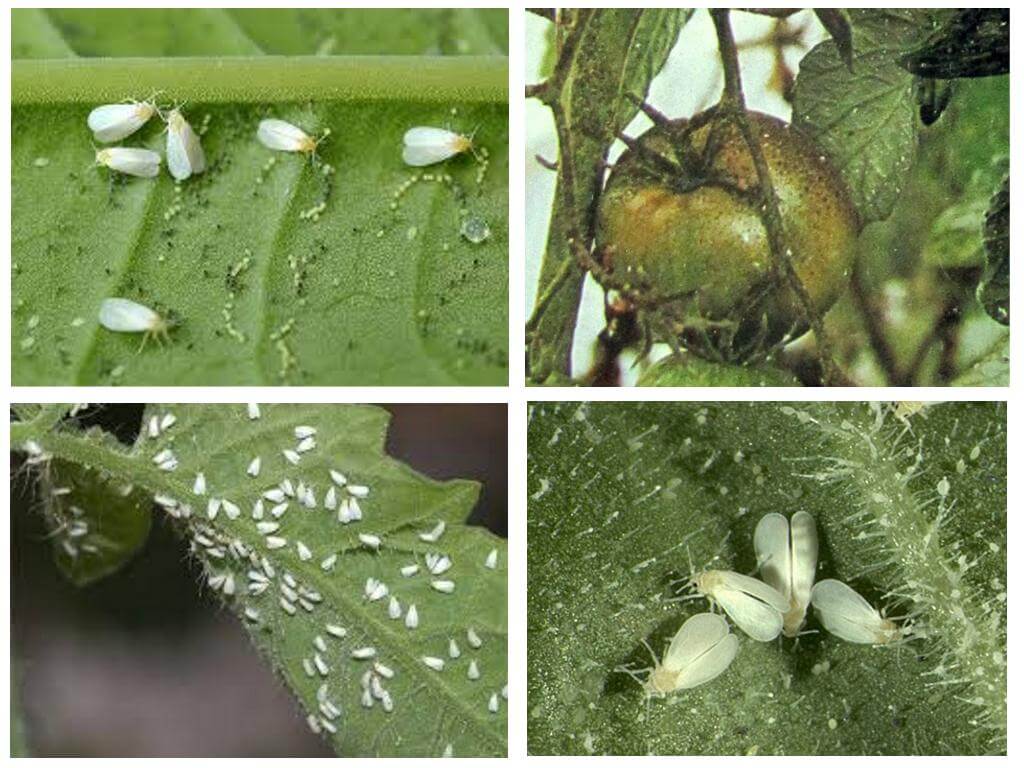 Белокрылка паразитирует на томатах, и если от нее не избавиться она может не только испортить листья растения, но и привести к гибели всех плодов. Мелкие летающие мотыльки белого цвета садятся на нижние части листьев и откладывают там личинки. Личинки питаются соком и водой, которыми богаты листья томатов.