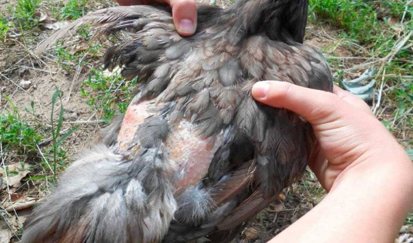 - курица чешется и выщипывает у себя перья;