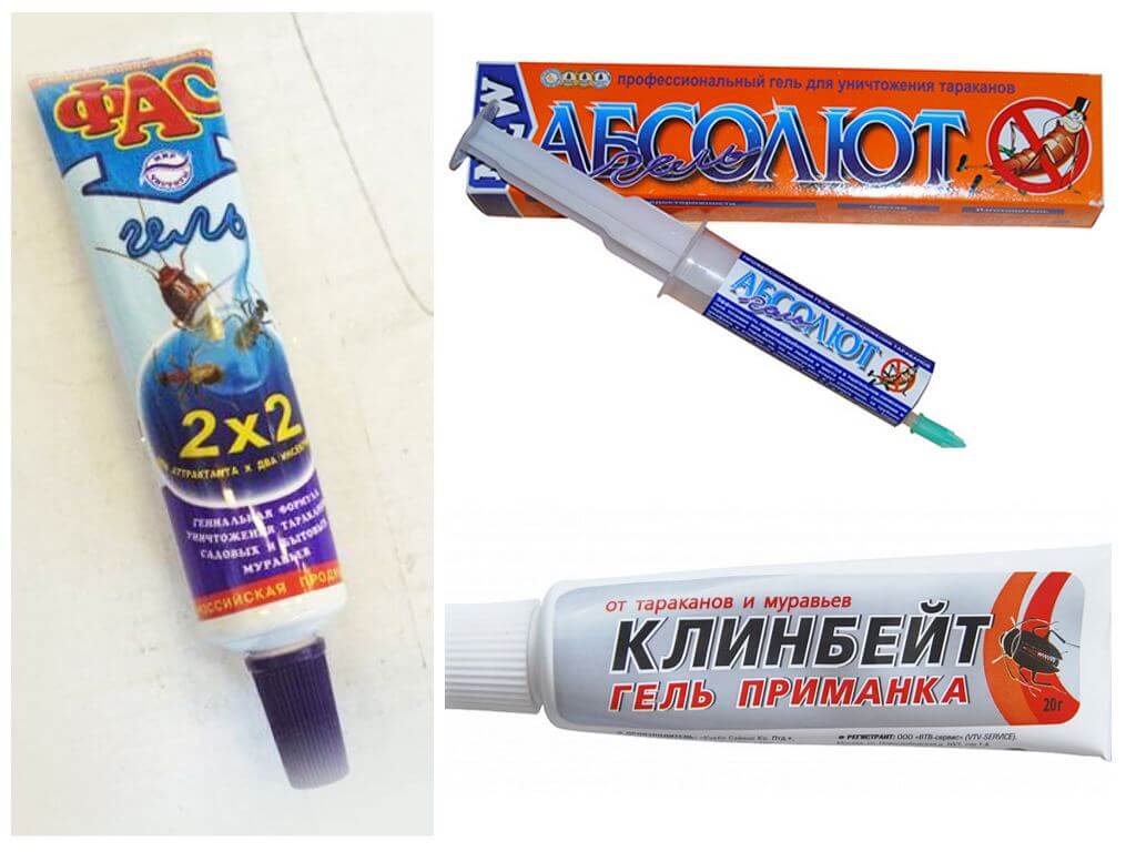 Подобным эффектом обладают инсектицидные гели. Такие средства используют для травли не только тараканов и муравьев, но и мокриц. Длительный период начала действия является недостатком данного средства. Особенно популярны следующие марки: Абсолют, Фас, Клинбейт.